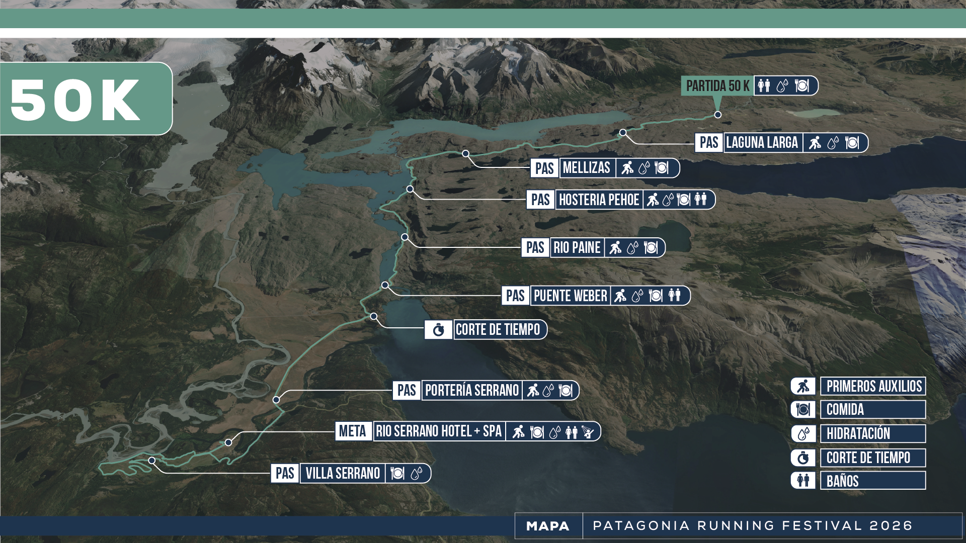 Para facilitar a participação dos corredores, teremos ônibus de aproximação de Natales ou Villa Río Serrano até o local de largada da corrida.